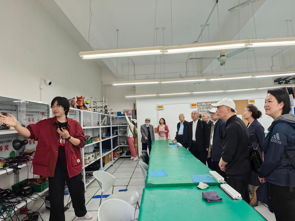 在学院创新基地同济大学智能车竞赛实验室现场,本科生队员热情接待了老领导们。2025赛季助管张方杰同学系统介绍竞赛实验室在学校和学院支持下的发展历程,汇报了人工智能和机器人结合在大学生课外实践中的多项成果。自2005年成立以来,竞赛实验室始终坚持“零基础起步、全周期培养”的育人理念,通过阶梯式实战训练体系,培养兼具硬件架构、智能算法、系统集成与团队协作等能力的复合型创新本科生人才。 相关数据显示,仅近五年就有来自不同学院不同专业的本科生近400人直接受益,竞赛实验室参赛队伍(近500人次)斩获国家级赛事奖项145项(其中国家级一等奖和二等奖之和超过100项)。