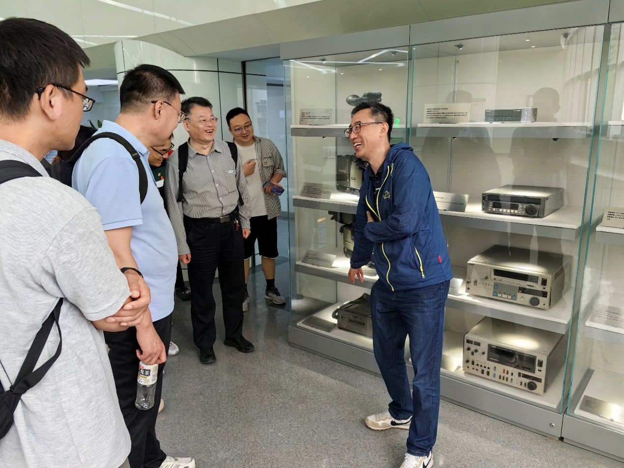 上午9时许,教工第九党支部教师一行9人抵达位于大连路1541号的上海教育电视台,受到技术中心党支部书记王金海的热情接待。在王书记的带领下,支部成员首先参观了台史馆,了解了上海教育电视台自1994年建台以来的发展历程,以及其在教育信息化、科教节目制作等方面取得的显著成就。展馆内,一幅幅记录历史瞬间的珍贵照片、一件件承载时代记忆的录播设备,展现了我国教育传媒事业从传统走向现代的发展轨迹。