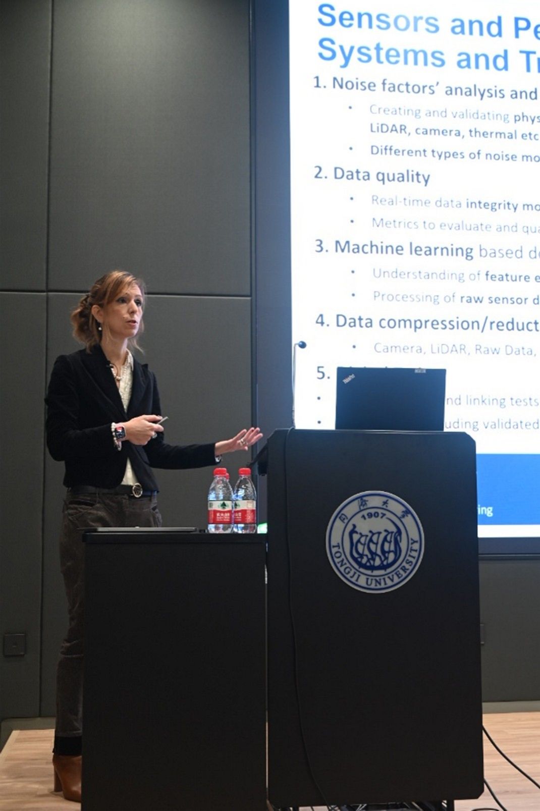 Donzella教授的报告深入探讨了传感器数据中的“黑暗面”——即噪声、干扰、老化等因素对传感器系统的影响,在雨雪、雾霾、低光照、动态变化的背景等环境下,传感器可能出现获取数据不精确,甚至出现噪声等问题。她详细阐述了课题组在通过传感器间的协同作用克服环境干扰,提高感知能力方面的工作,并介绍了其在车辆自动驾驶方面应用。