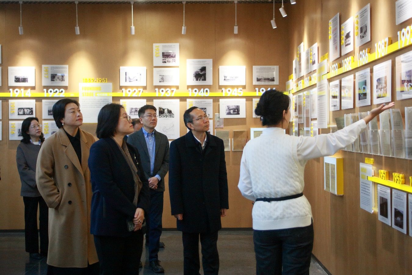 座谈会前,杨金龙、曹静在学院党政领导的陪同下参观了院史馆。