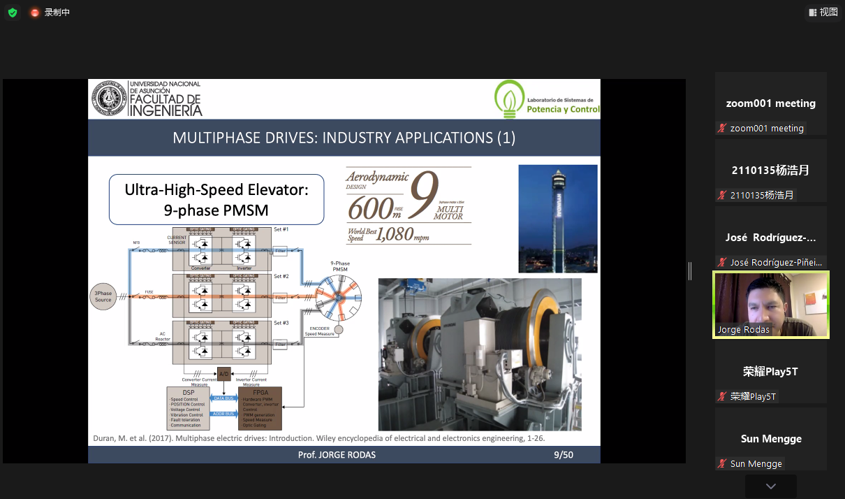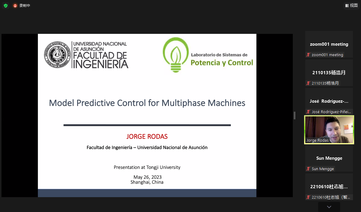 2023年5月26日晚,由学院、上海自主智能无人系统科学中心联合举办的智·信讲堂校庆特别系列第53期线上开讲。本次讲堂邀请亚松森国立大学Jorge Rodas教授作“Model Predictive Control for Multiphase Machines”主题报告,由张皓教授主持。