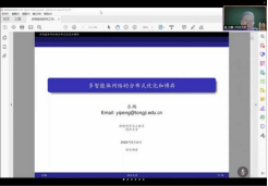 衣鹏老师分别从多智能体网络的分布式决策、分布式网络线性方程计算、随机图下的在线分布式优化、线性约束博弈优化方法以及鲁棒博弈纳什均衡计算等方面展开报告。他主要介绍了多智能体网络、分布式优化、博弈和学习的含义及背景;分析了工程系统与复杂网络中多智能体网络决策中存在的问题与挑战,然后利用数学模型对实际问题进行建模,借助一些例子描述多智能体分布式优化问题的建模、转化与求解过程。他介绍了他们团队在有线通信带宽约束、异构非共享决策约束、非完全不确定信息约束等方面关于多智能体网络鲁棒分布式优化与博弈理论方法研究方面的进展;进一步介绍了网络通信中的数据量化方法;基于分布式在线优化,介绍了线性耦合约束下的博弈优化方法;最后对不确定耦合约束下的广义纳什博弈计算进行了分析。衣鹏老师丰富精彩的报告为学校同学和老师的学习和科研工作带来了思想启发,为同学们学习多智能体的分布式优化与博弈提供了有益指导。