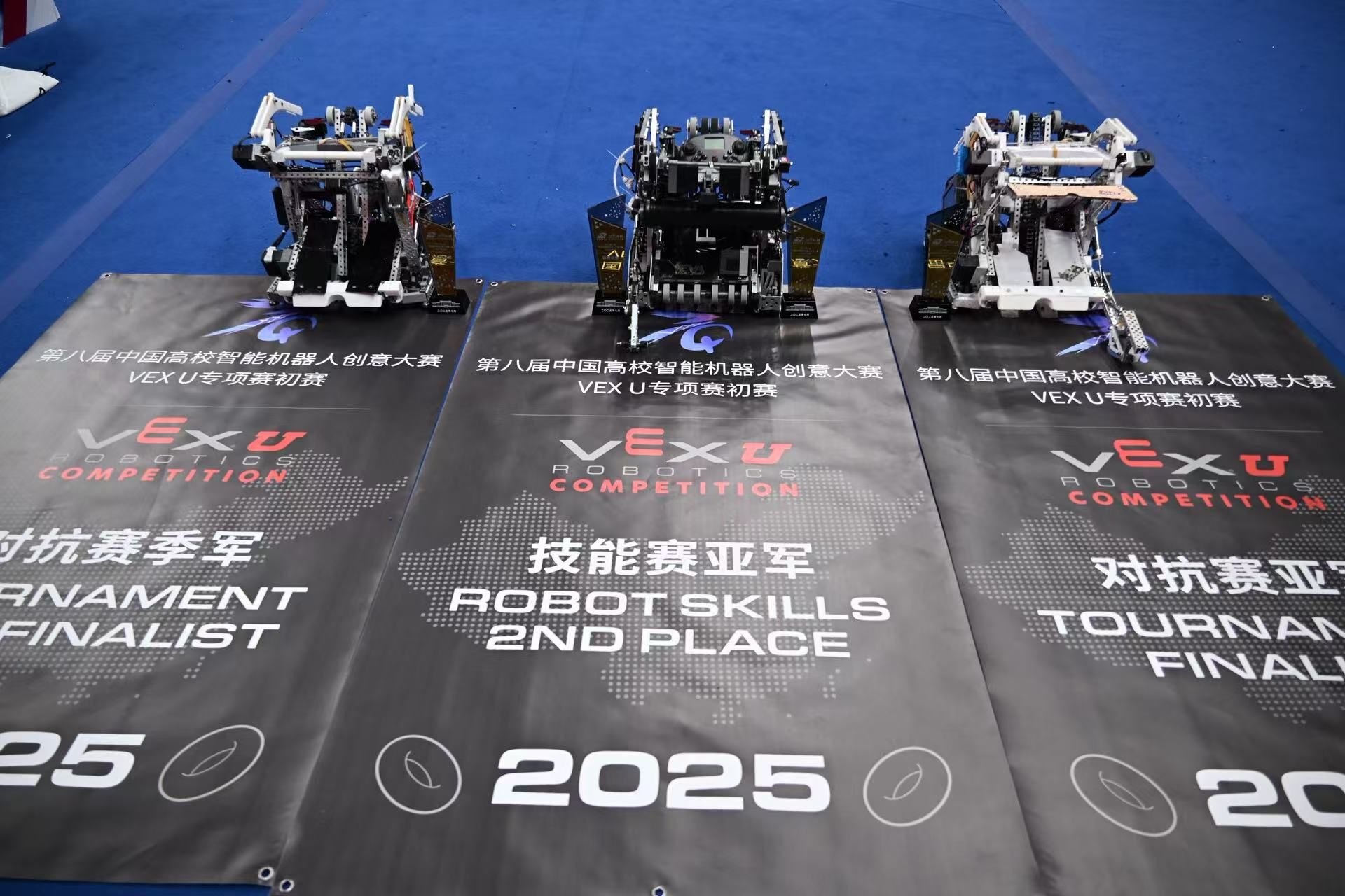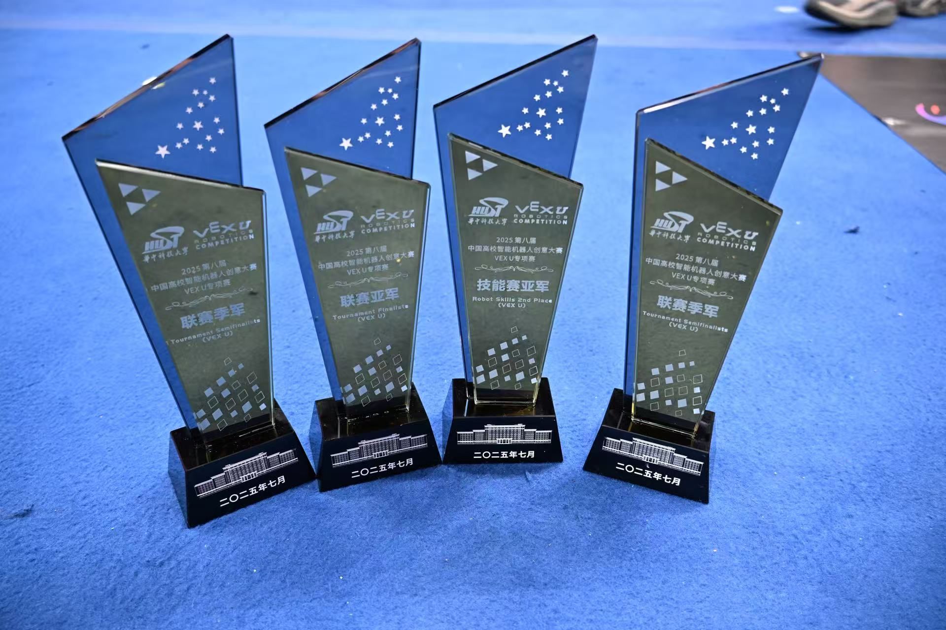 VEX机器人创新实验室组织训练的4支本科生团队参赛,最终斩获区域赛二等奖4项,总决赛二等奖、三等奖各1项,以及对抗赛亚军、季军和技能赛亚军。